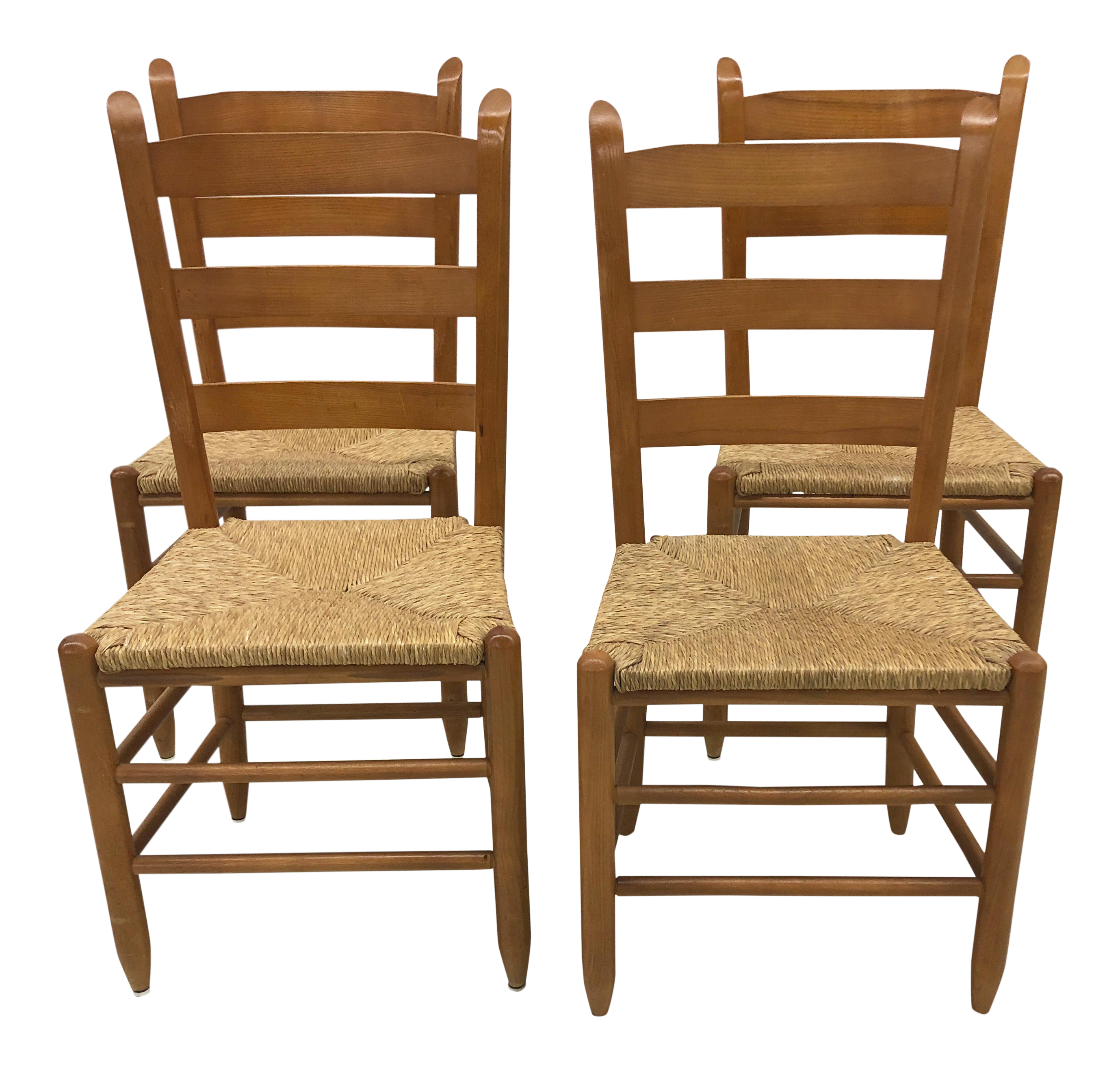 Set Of 4 Solid Maple Ladder Back Dining Chairs With Rush