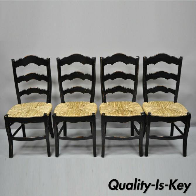 4 French Country Woven Rush Seat Ladder Back Ladder Back Country Dining Chairs